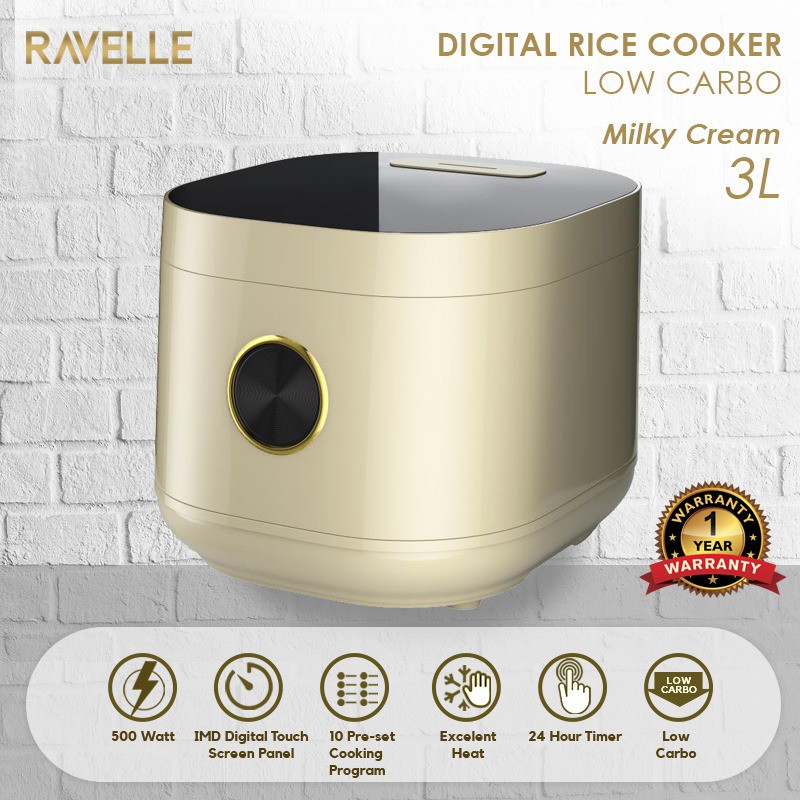 Ravelle rice cooker low carbo dibekali timer yang memudahkanmu dalam mengatur waktu masak. Rancangannya menggunakan teknologi terbaru berupa IMD digital touch screen panel, yang artinya kamu bisa memilih menu yang diingin cukup dengan menekan tombol yang tersedia pada kontrol panel.