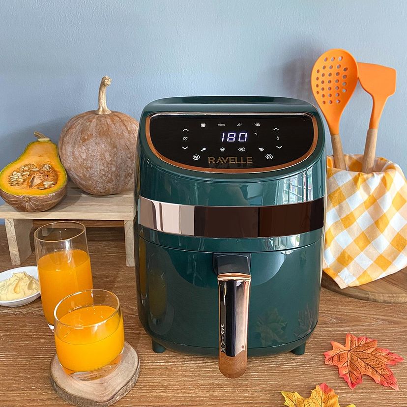 Digital Airfryer dari Ravelle bisa digunakan untuk menggoreng tanpa perlu minyak. Alat ini dapat mematangkan makanan dengan cara memanfaatkan udara panas, namun makanan yang dimasukkan ke dalamnya bisa tetap renyah tanpa khawatir minyak menempel.